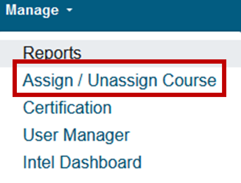 - Go to the Manage portion of your LMS and select Assign / Unassign Courses