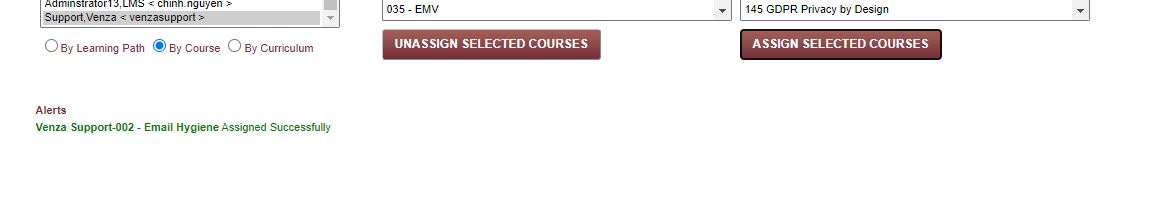 The Alerts section at the bottom of the screen will confirm that the course or learning path has been assigned successfully
